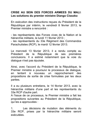 Crise au sein des forces armées du Mali: Les solutions du premier ministre Diango Cissoko